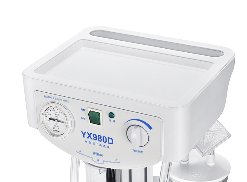 Aspiratorul chirurgical model YX980D oferă vid și debit ridicat cu piston dublu prin care creează rapid un vid puternic și este utilizat în special în timpul operațiilor chirurgicale pentru aspirarea rapidă a cantități mari de lichid. Designul avansat, precum și configurația perfectă, îndeplinesc satisfăcător această funcție.